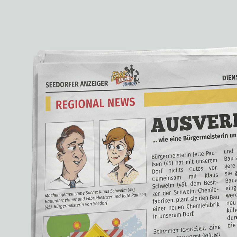 2021 erweiterten wir das Konzept mit FakeHunter Junior, einer kindgerechten Version für Grundschüler*innen. Mit multimedialen Aufgaben, Illustrationen und einer Detektivgeschichte lernen Kinder schon früh, Wahrheit und Lüge auseinanderzuhalten.