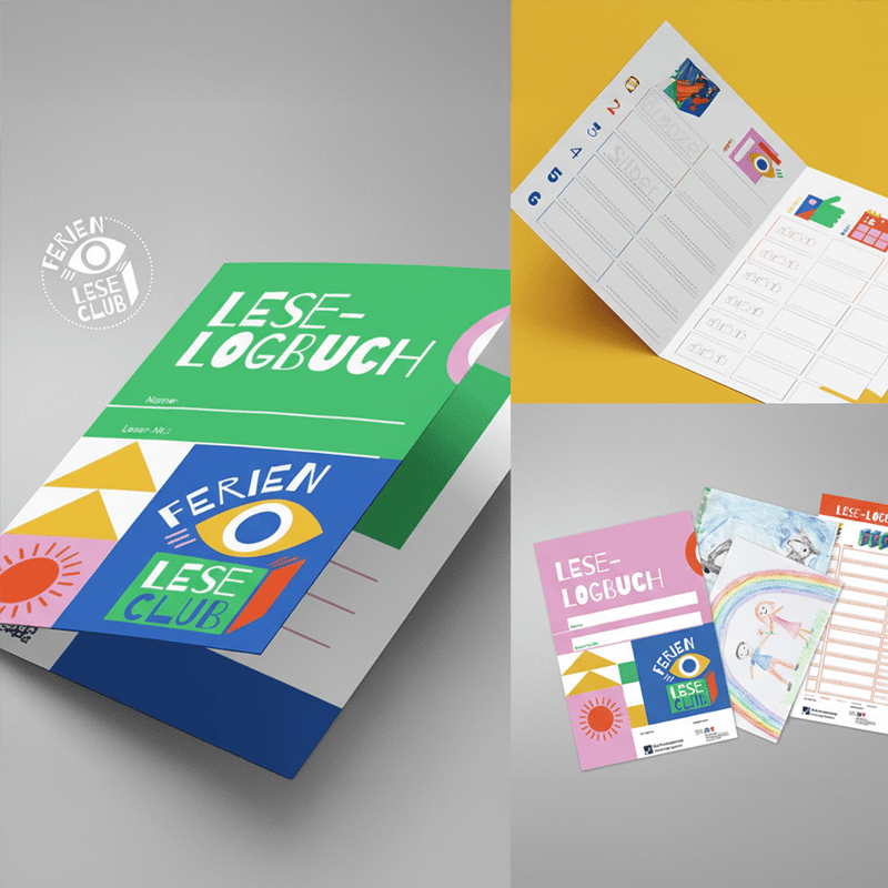 Wir entwickelten ein umfassendes Corporate Design mit klaren Gestaltungselementen, die sich vielseitig einsetzen lassen: vom Logo-Relaunch über Flyer, Urkunden, Buttons, Clubausweise, Lese-Logbücher bis hin zu Materialien für Bibliotheken, Lehrer:innen und Teilnehmende. Das neue Design ist farbenfroh, dynamisch und lebendig – und sorgt dafür, dass der FerienLeseClub (FLC) von der Anmeldung bis zur Abschlussfeier durchgängig Freude und Motivation ausstrahlt.